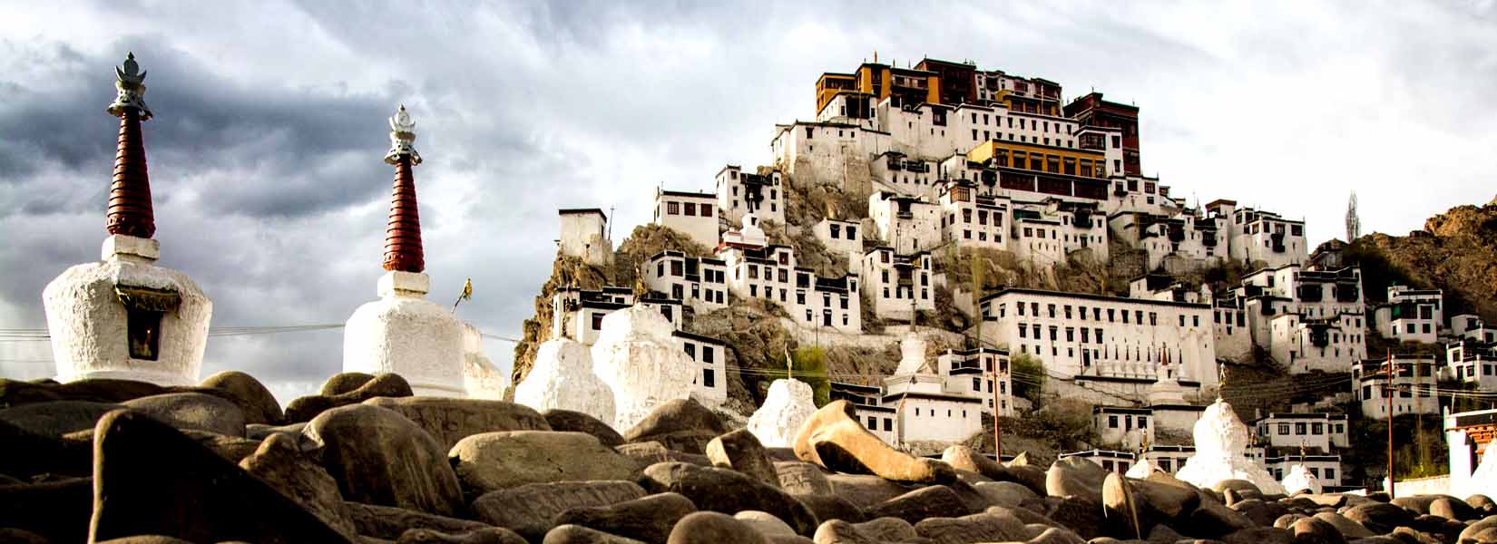 Day 2: In the morning after breakfast, full day excursion to various Monastaries/Gompas in and around Leh. Visit Thiksey Monastry (19 Kms) and from there drive to Shey Monastry. After that, drive further to visit Hemis Monastry (40 Kms from Leh). Hemis Monastry is one of the famous Monastries and is the wealthiest, best known and biggest Gompa of Ladakh. Back to Leh in the evening. En route, visit Stok Palace and Museum. Dinner and overnight stay at Leh.